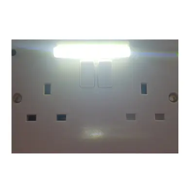 Yes, it’s a standard BS1363 socket but with an LED (light-Emitting Diode) COB (Chip On Board) installed on the front and a circuit board behind with a rechargeable battery.