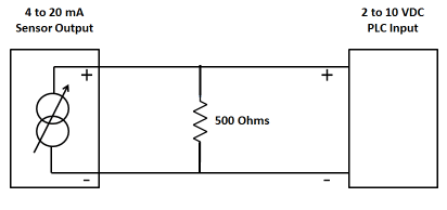 0-20 mA to 0-10 VDC : 500 Ohms resitor