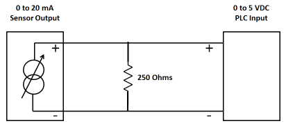 0-20 mA to 0-5 VDC : 250 Ohms resitor