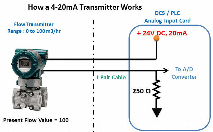 Basically, Ohms law saying that voltage(V) is equal to the current(I) multiplied by the resistance(R) is used to calculate a resistor value in order to convert the 0-20mAsignal to a voltage.
