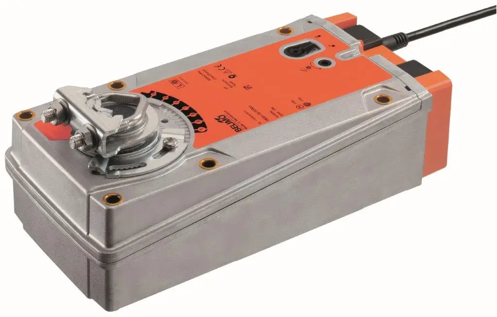 Spring-return actuator with emergency function for adjusting air dampers in ventilation and air conditioning systems in buildings.