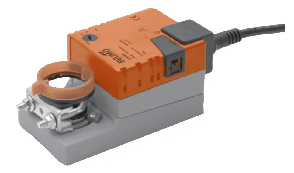 Damper actuator for operating air control dampers in ventilation and air-conditioning systems for building services installations.