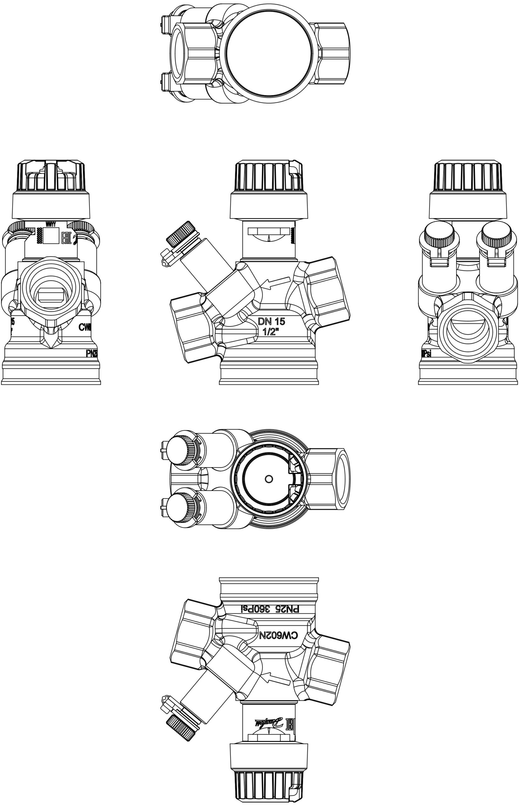 AB-QM, DN 15, Test plugs: With test plugs, Internal thread ISO 7/1; Rp ½