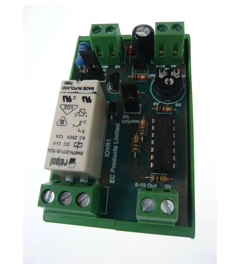 The IOVRI is an SPCO change over relay output from 0 to 10Vdc with a fully adjustable switch point.