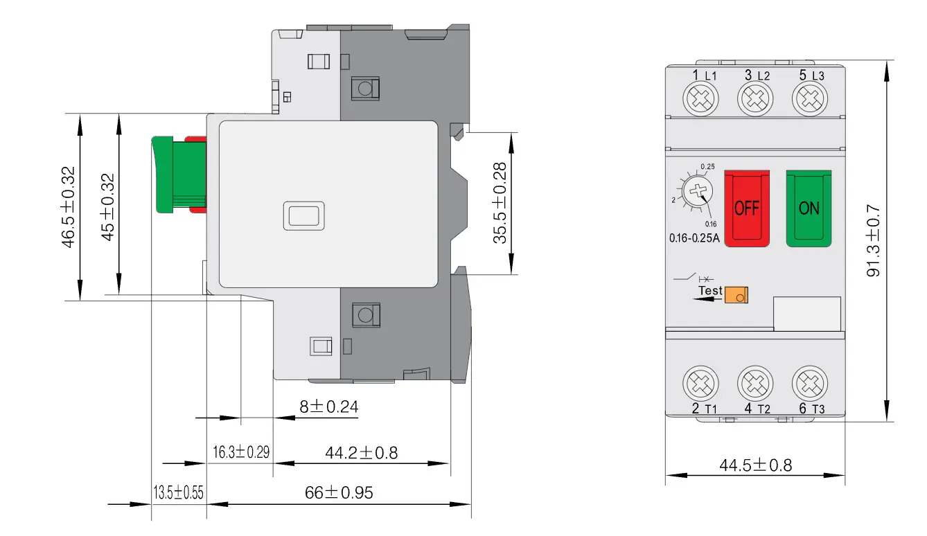 0.25-0.4A, 0.4-0.63A, 0.63-1.0A, 1-1.6A, 1.6-2.5A, 2.5-4A, 4-6.3A, 6-10A, 9-14A, 13-18A, 17-23A, 20-25A, 24-32A