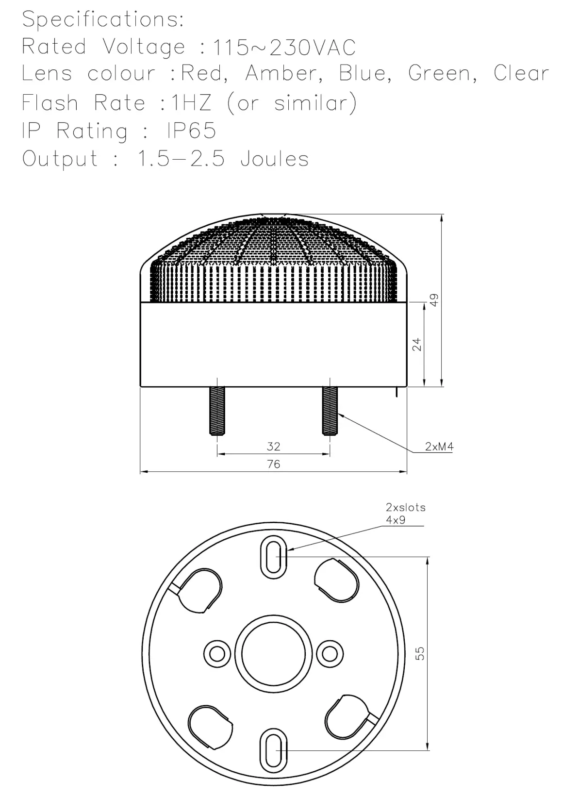 The BX Flashing Xenon Beacon is an IP65 warning Beacon available in 2 Voltages and five different colours, which can be mounted directly or as a Bayonet fitting with rear cable entry.