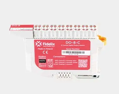 The 8-channel digital output module has 8 changeover relays, capable of taking on a maximum load of 2A at 24 VAC, or 6A at 12 VDC. Each channel has a LED indicating its current status. Control loops with a load up to 1 A at 30 volts from each channel and swiftly command any device from a serial Modbus master controller.