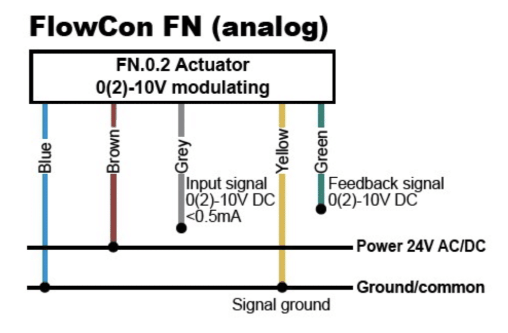 FlowCon FN.0.2 – 24V 0(2)-10V modulating actuator (equivalent to the current FN.0.2 actuator)