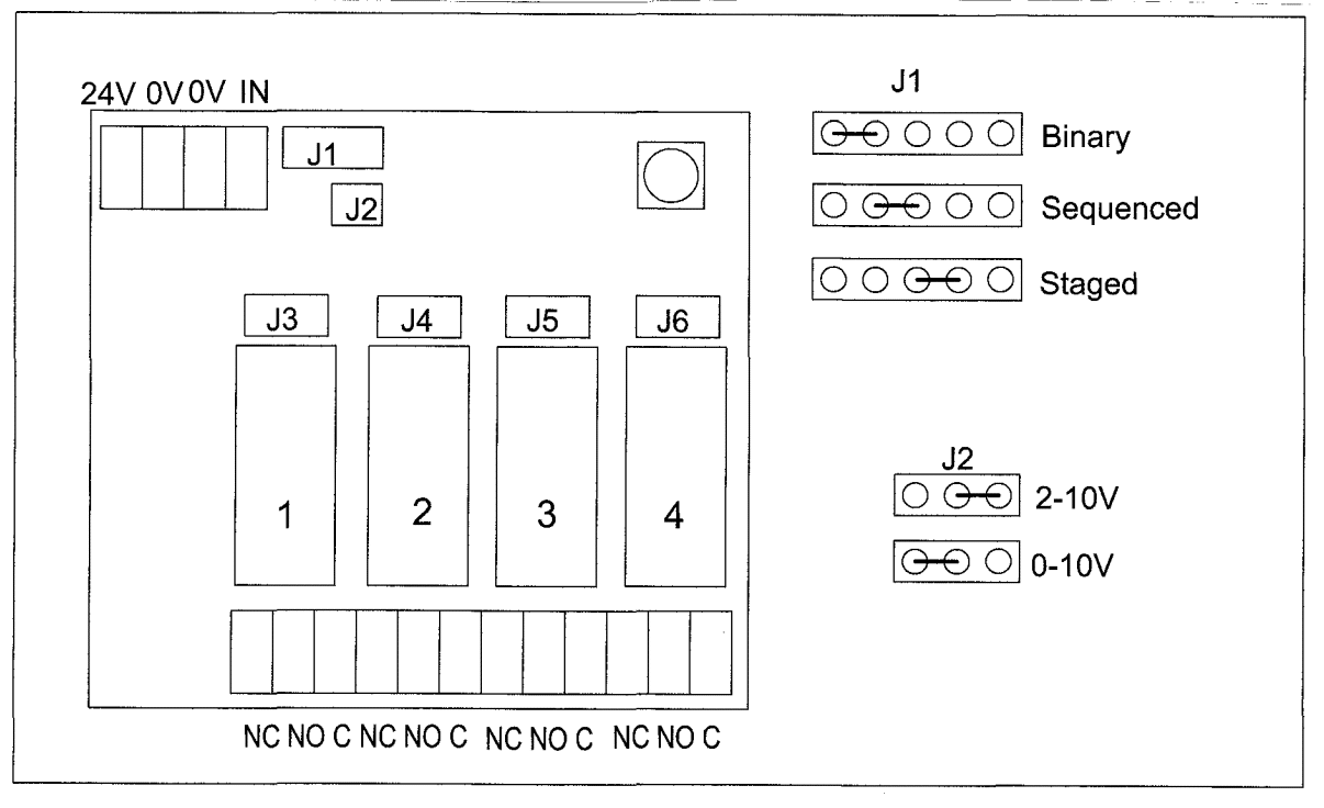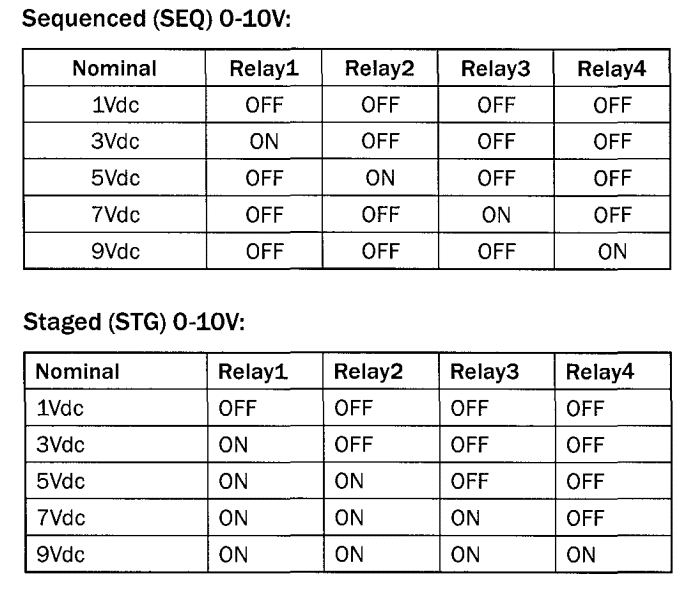The IOR4 is intended for use with BMS controllers to convert an analogue control output to a binary, staged, or sequenced relay mode. LEDs indicate correct operation, and Hand/Off/Auto jumpers ease commissioning. Low current draw from the 0-10Vdc controller output means that the IOR4 can work successfully with most BEMS controllers.