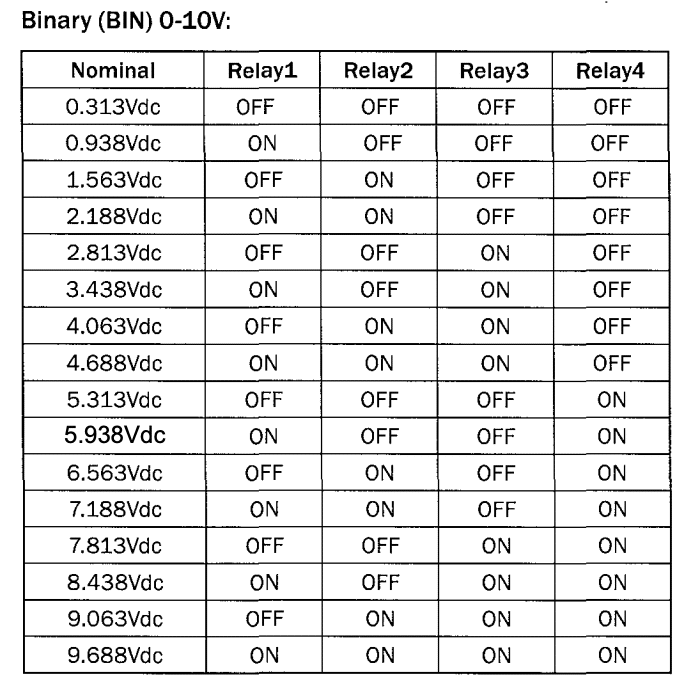 Hysteresis: ± 0.2Vdc about switching points (± 0.1Vdc in binary)