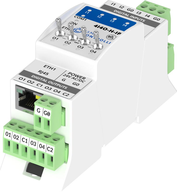 ISMA-B-4I4O-H-IP is one of the easiest to set up and most versatile IO modules. Compatible with almost any BMS that works on either Bacnet or Modbus. It has 4 Digital Inputs and 4 Digital Outputs and can be hand-operated.