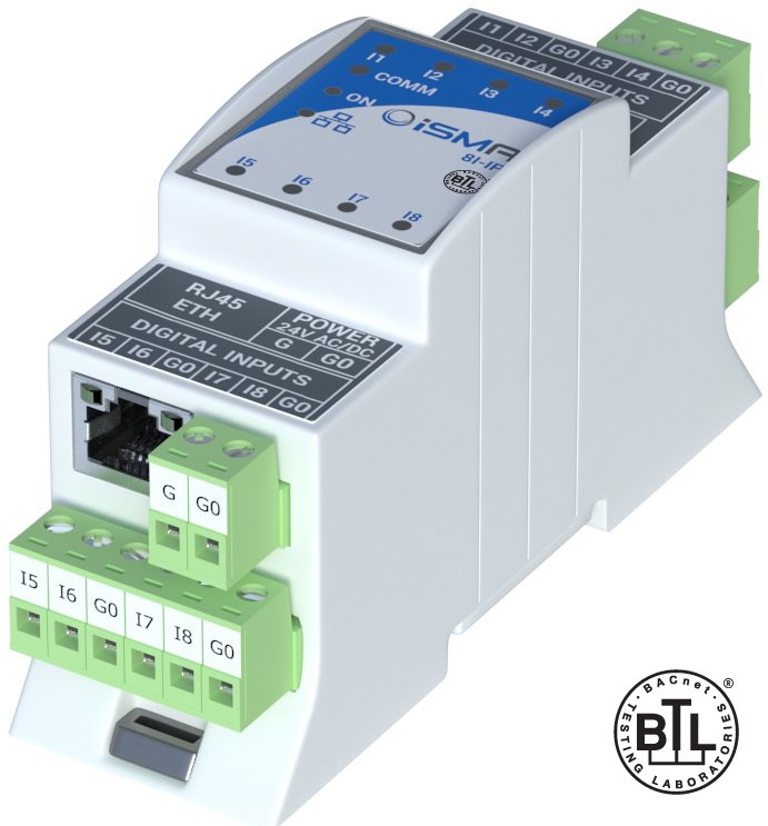 iSMA-B-8I-IP is one of the easiest to set up and most versatile IO modules. Compatible with almost any BMS that works on either Bacnet or Modbus. It has 8 Digital Inputs and works on IP connection.