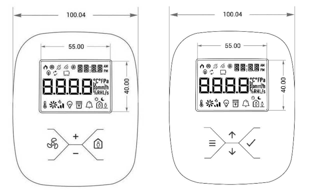 iSMA-B-LP-H-1 is a room unit with a 2.3 LCD display and four function buttons. Additionally, the room unit has built-in temperature and humidity sensors.