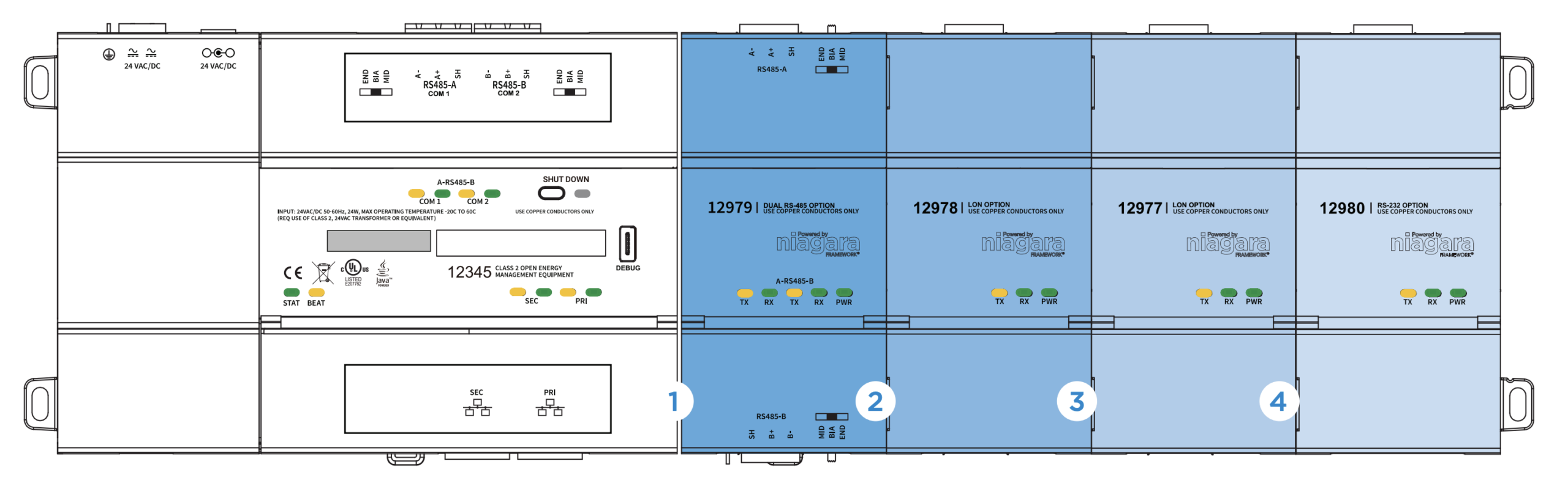 The modular design of the JACE 9000 controller makes it easy to install, integrate and deploy. Tool-less installation with expansion capability reduces installation complexity and improves flexibility. Systems integrators can focus on engineering solutions rather than assembling components. And their lives will be simplified with a global power supply and improved access to standard enclosures.