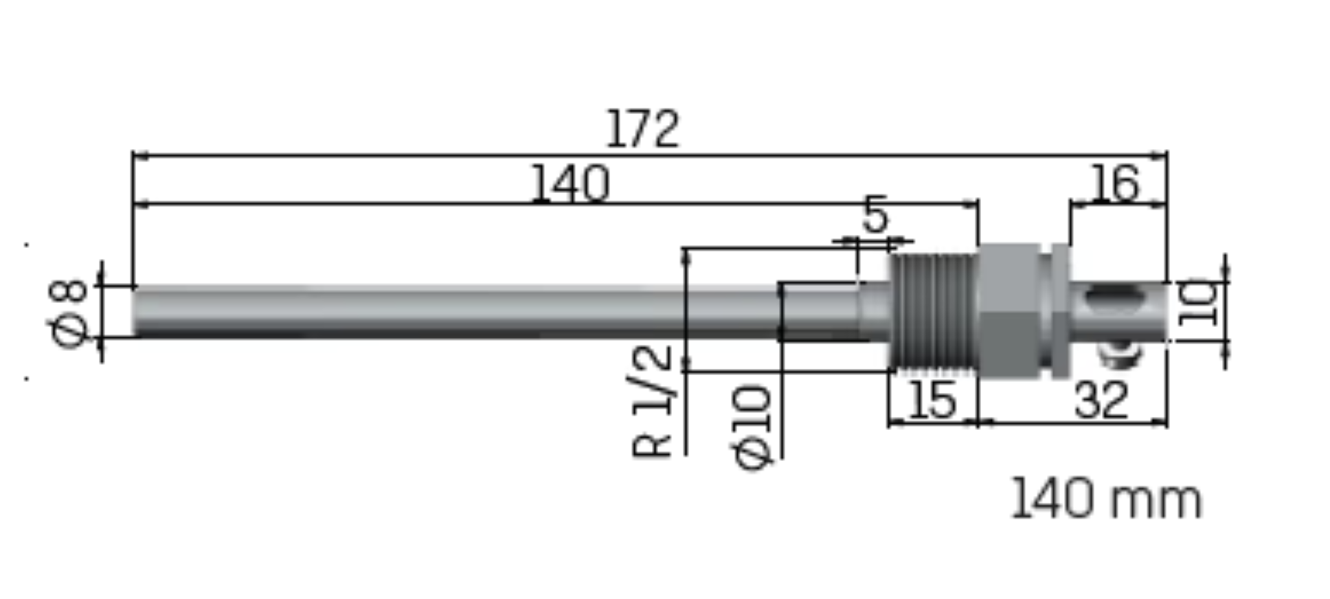 Kamstrup Temperature Sensor Pocket, 1/2″ BSP, Length = 140mm.