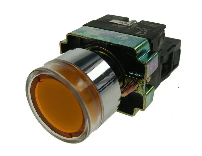 Normally Open 24v LED illuminated Pushbutton Metal Bezel – Yellow