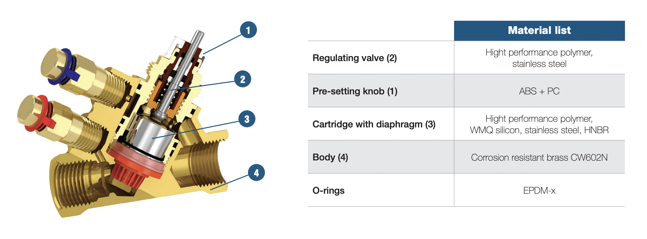 • DPCV dirt-resistant: the valve works during and after a Contaminated Water Test (proprietary test) with a high concentration of iron oxide.