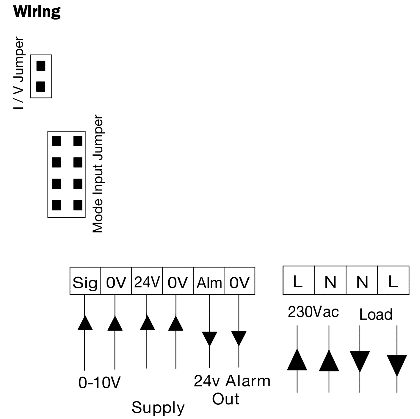 Alarm Output: 24V alarm output drops to 0V on the alarm for connecting to the external relay