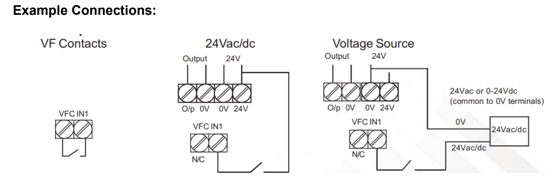 The input registers are active when the contact is closed. Additionally, jumpers are fitted to allow each