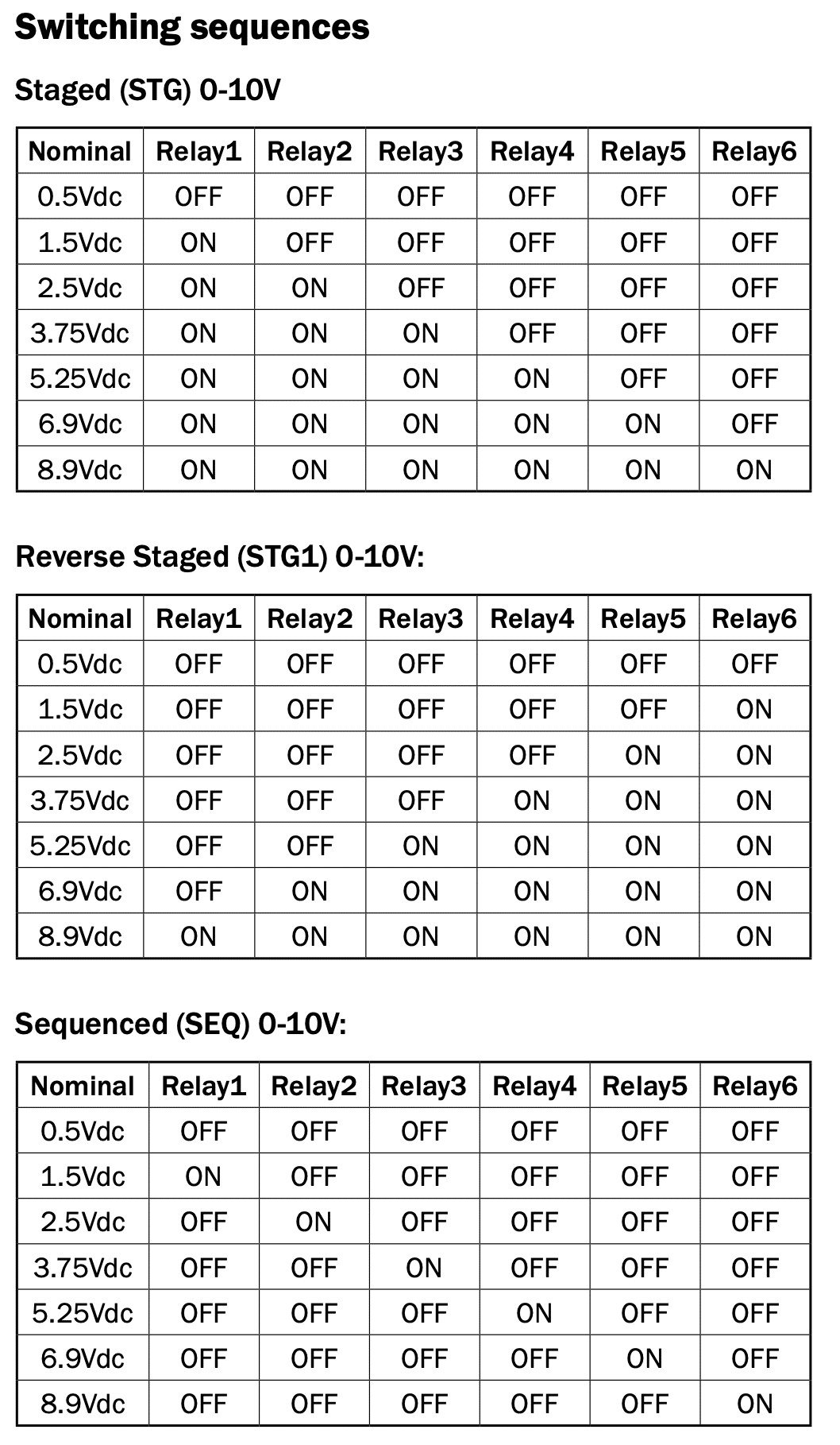 This IO module is used with DDCs to convert an analogue control output to a staged, reverse-staged or sequenced relay output.