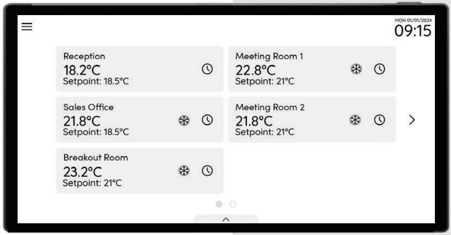 Providing a networkable multi-zone user interface for comfort control adjustment, time scheduling, energy management, and more when used alongside the Titan NetMaster and TP-710 controller range.