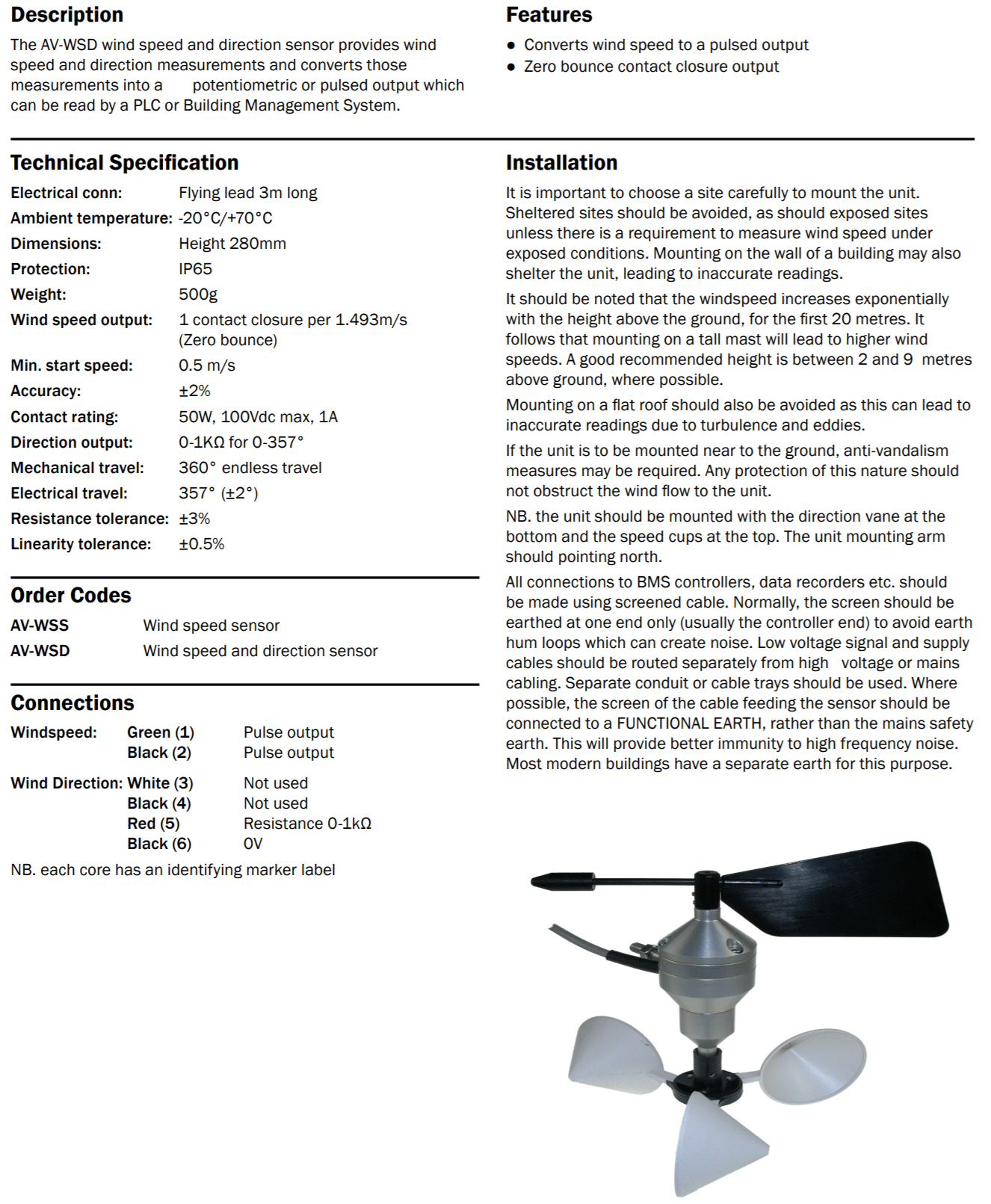 Wind Speed and Direction Sensor – AV-WSD