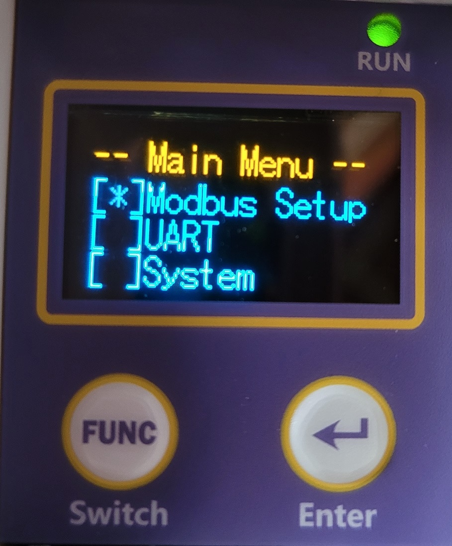 - Baud rate: 1200, 2400, 4800 or 9600 bps, 8N1, 8E1 or 8O1