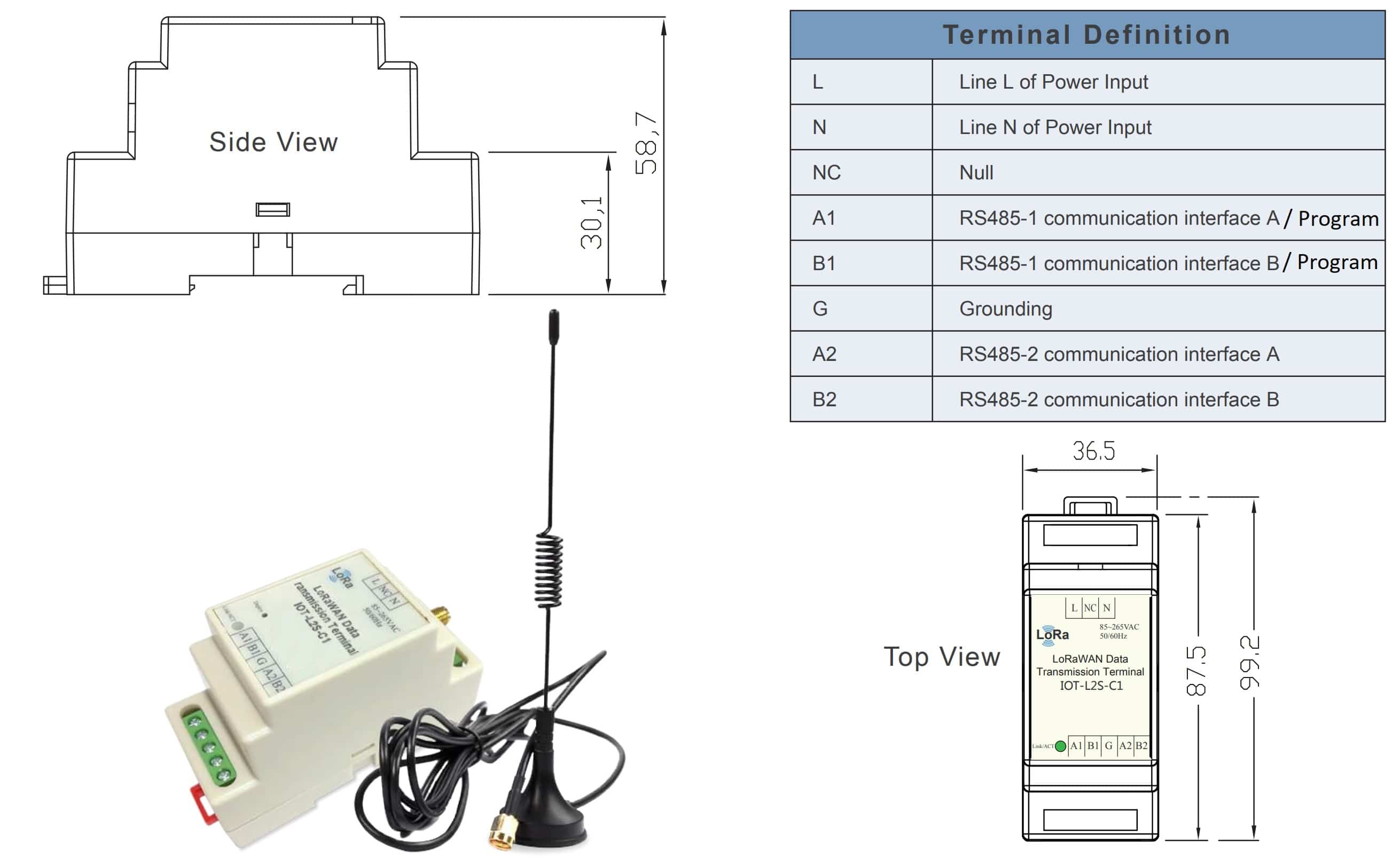 The LoRaWAN Data Transmission Terminal is a universal communication interactive equipment that is designed and manufactured based on LoRa RF chip.