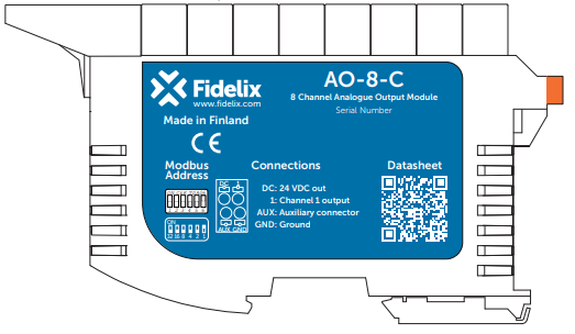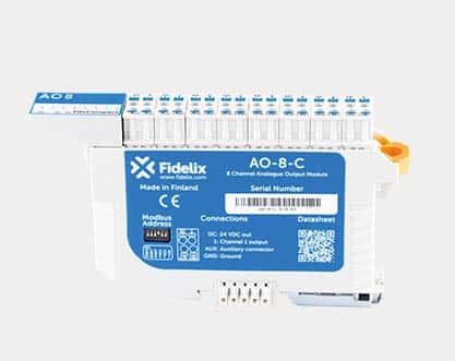 The 8-channel analogue output module is used to generate voltage control signals. Its 8 individually configurable channels are short-circuit protected, can send out precise voltages from 0 to 10 V, and have parametrisable safeguard values in case of a rupture in communication from a serial Modbus controller.