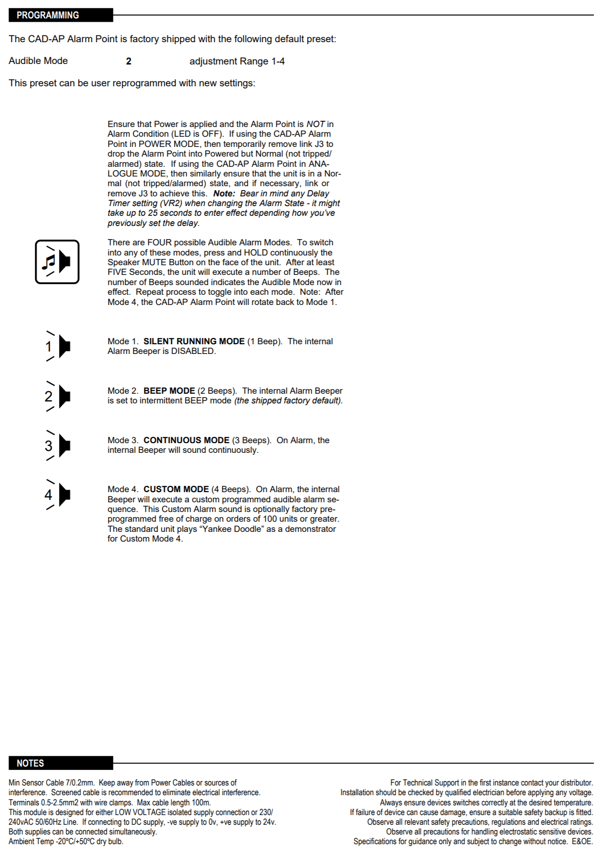Output Signals:Â Â Â Â Â Â Â Â 1 x Visual High-Intensity LED /Â 1 x Audible Piezo Sounder