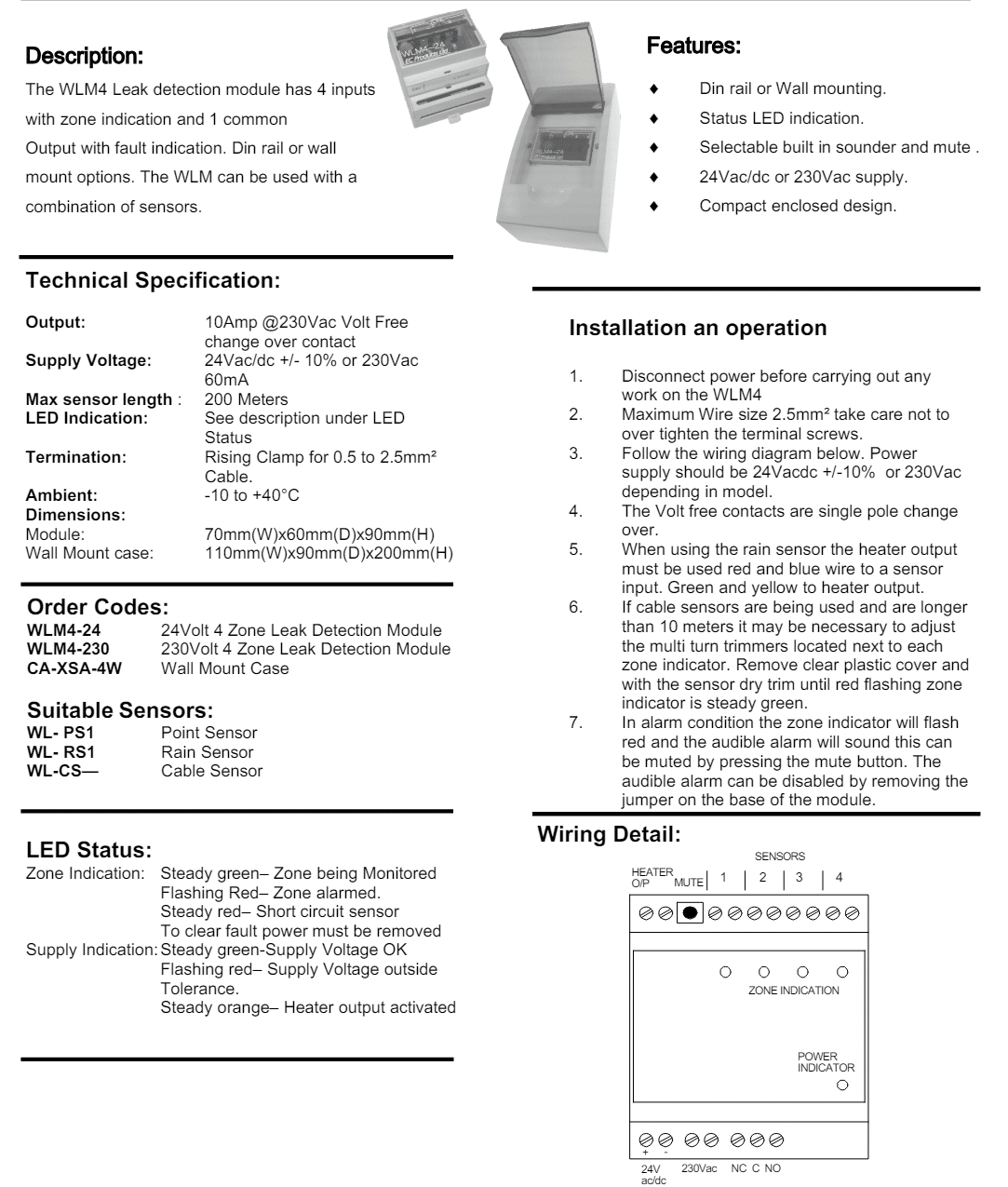 Water Leak Detection Cable Sensor for the WLM4 modules